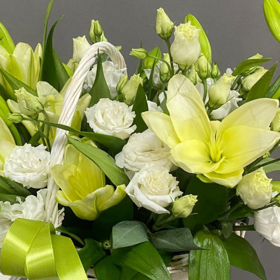 Корзина с белыми лилиями и эустомами в Серове